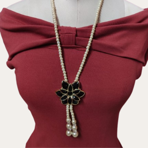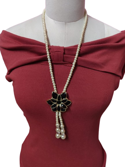 Elevate your elegance with our Pearl Necklace, featuring a beautiful black flower pendant that can be adjusted for the perfect look. The lustrous pearls complement the striking flower, creating a stunning balance of sophistication and versatility. Whether worn as a statement piece or a subtle accent, this necklace adds a touch of timeless beauty to any ensemble.