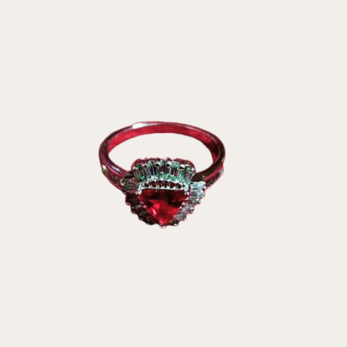 A stunning ring featuring a pinkish-red stone, adding a touch of elegance and charm. Perfect for making a subtle yet striking statement.